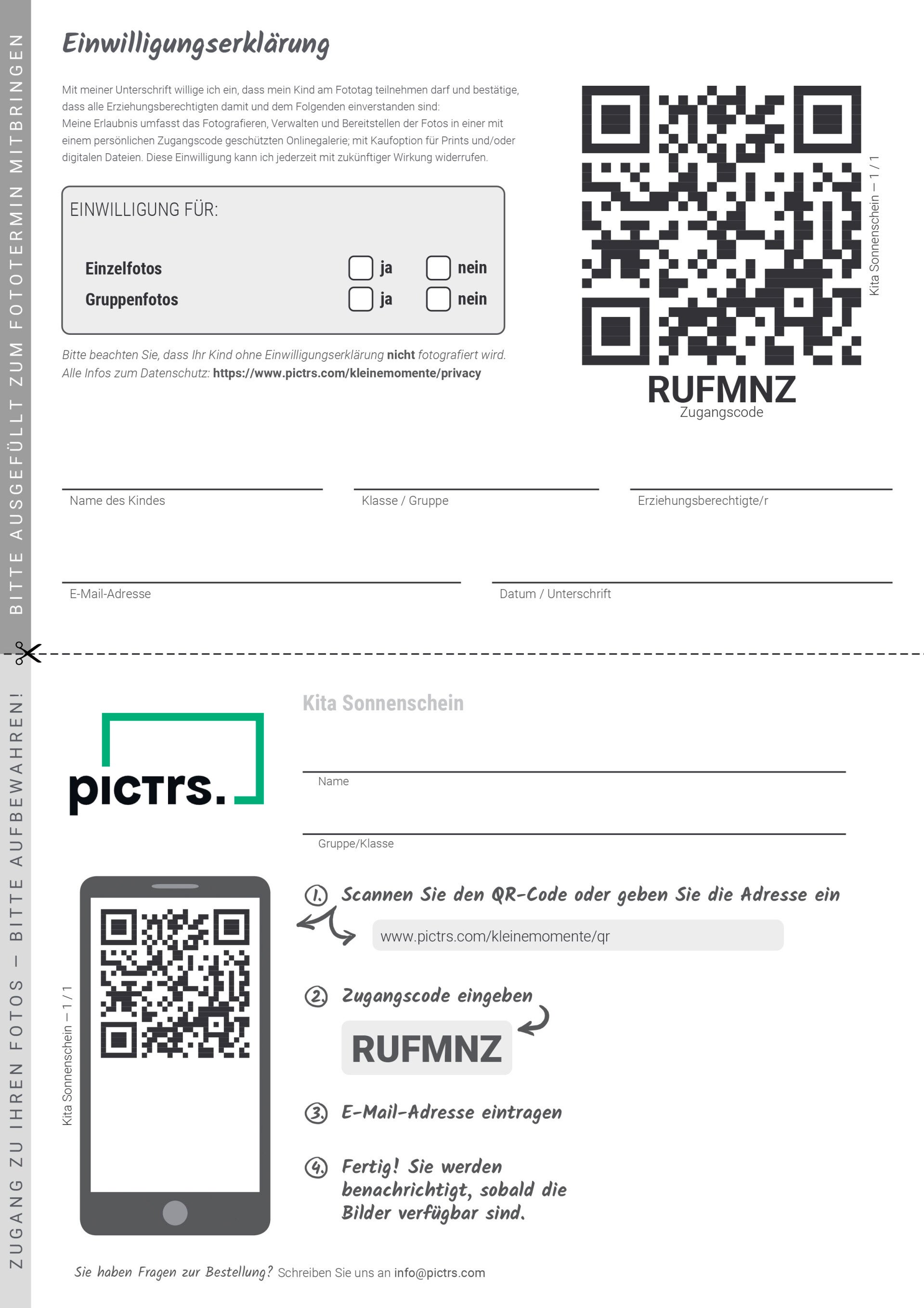 Unser innovatives QR-Code-Verfahren macht die Bestellung für Eltern denkbar einfach und nimmt der Kita die Last des Geld-Einsammelns oder des Verkaufs von Fotomappen ab. Eine moderne Lösung für moderne Kindergärten.